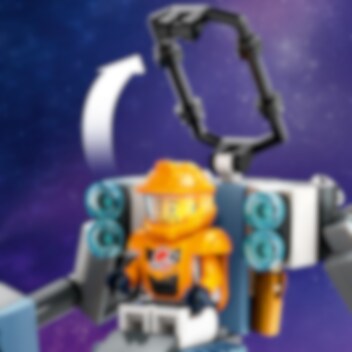 Kravl ind i cockpittet på den hårdføre mech-robot til rumarbejde, og tag på en fantastisk mineekspedition på en fremmed planet. Den seje robotdragt er perfekt til at udforske nye verdener med sine store fleksible led, en kraftig løfteklo og store fødder til at gå på planetens overflade. Få din byggerobot til at bore efter prøver, og brug dine hammer- og kloarme til at bryde klipper og afsløre strømskabende energikrystaller. Klar? Så til arbejdet!