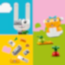 Dyrefans fra 5 år kan styrke deres passion for kæledyr med dette kreative byggesæt med dyr. LEGO® Classic sættet Kreative kæledyr (11034) er en inspirerende blanding af byggeklodser med nemme vejledninger til et farverigt udvalg af legetøjsdyr, der er hurtige at bygge. Det er en fantastisk måde at støtte børns kreative byggeri på. Med 450 LEGO byggeklodser, bl.a. specialelementer med øjne og mund, og nemme trinvise vejledninger kan børn bygge en hund med skål og ben, en kat på en søjle, en hamster med et æble, en kanin med en gulerod og en fugl på en pind. Med de medfølgende forslag til alternative farver, former og funktioner kan børn ombygge deres kæledyr på en sjov og ny måde. I takt med at deres kreative byggefærdigheder udvikler sig, kan børn afprøve deres egne idéer. Der medfølger en guide med 10 idéer, der kan kickstarte sjov fribyggeri. LEGO Classic legetøj er fyldt med idéer og inspiration, og forældre kan dele sjove byggeoplevelser og udviklingsmæssige milepæle med deres børn.