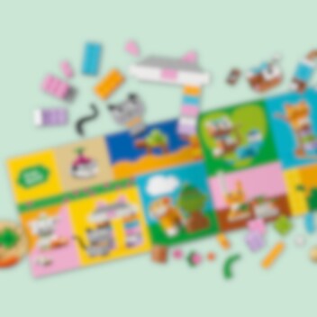 Byg dine egne kæledyr! Lav en sød hund, kat, hamster, kanin og fugl, hver med deres yndlingsmad og et legetøj. Vælg klodser med øjne og munde for at give dem deres egne udtryk. Ombyg, når du vil, og skift farver, størrelse og detaljer for at gøre dyrene lige så unikke og særlige som dig selv. Få endnu mere sjov ved at tjekke de fantasifulde medfølgende idéer til fribyggeri, som kan give dine kæledyr et ekstra kreativt boost!