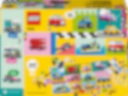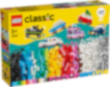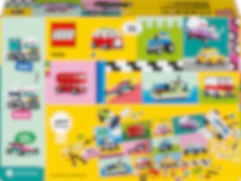 Forkæl børn fra 5 år, der elsker køretøjer, med LEGO® Classic legesættet Kreative køretøjer (11036). Det farverige byggesæt indeholder en blanding af byggeklodser og elementer samt nemme vejledninger til et farverigt sæt køretøjer, der kan ombygges i det uendelige. Med 900 klodser, specialelementer og 52 hjul samt nemme vejledninger kan børn bygge en politibil, isbil, ATV, frontlæsser, lastbil, stationcar, offroader og limousine. Med idéer til forskellige designs, seje detaljer og farverig udsmykning kan de ombygge deres køretøjer på nye sjove måder. I takt med at deres kreative byggeevner udvikler sig, kan børn afprøve deres egne designs. Der medfølger 10 fantasifulde idéer som inspiration til at kickstarte sjovt fribyggeri. Find også vejledninger i LEGO Builder appen, hvor børn kan zoome ind på og dreje modeller samt følge deres fremskridt. LEGO Classic legetøj er fyldt med idéer og inspiration, og forældre kan dele sjove byggeoplevelser og udviklingsmæssige milepæle med deres børn.