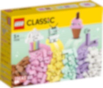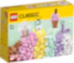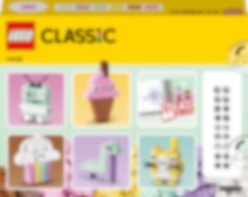Inspirer spirende byggere fra 5 år med LEGO® Classic sættet Kreativt sjov med pastelfarver (11028). Med modeller, der er hurtige at bygge, og endeløst sjov med fribyggeri giver den iøjnefaldende blanding af klodser børn lyst til at udforske deres passion for kunst og design. Kreativ leg med pastelfarver Det kreative byggesæt indeholder 333 klodser i forskellige former, størrelser og pastelfarver. 18 af klodserne har udtryksfulde øjne, som kan gøre børns kreationer levende. Der medfølger brugervenlig trykt instruktion til 5 sjove modeller, som er nemme at samle: en sky, is, dinosaur, kat og robot. I takt med at børns kreative selvtillid vokser, kan de udforske endeløst sjov med fribyggeri. LEGO Builder appen rummer også en digital version af sættets byggevejledninger. Super for hele familien LEGO Classic legetøj giver børn fra 5 år idéer og inspiration mellem hænderne og giver samtidig voksne en perfekt mulighed for at dele byggesjov og udviklingsmæssige milepæle med deres børn.