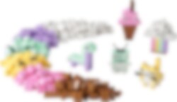 Giv børns kreative byggeri et skud glæde og vitalitet med denne inspirerende blanding af klodser med masser af iøjnefaldende pastelfarver. Start byggeriet med 5 modeller, der er nemme at samle – en sky, is, dinosaur, kat og robot – og brug de 18 udtryksfulde øjeklodser til at gøre modellerne endnu mere levende. I takt med at den kreative selvtillid vokser, kan børn begive sig ud i pastelfarvet, fribyggende sjov!