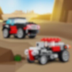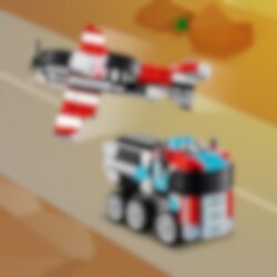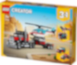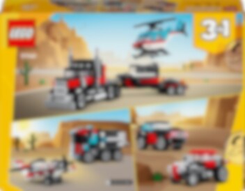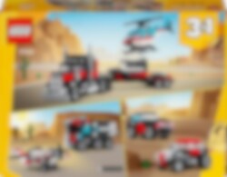 Se op mod skyerne! En helikopter er ved at lande bag på en lastbil. Når den er landet, kan du ombygge den seje LEGO® Creator Blokvogn med helikopter til et kraftfuldt propelfly og en tankvogn eller forvandle den til en hotrod-racerbil og en SUV for at udspille spændende racerløb. Du kan også fyre op under fantasien og skabe dine egne fartøjer. Der er nonstop-action med det her 3-i-1-fartøjssæt!