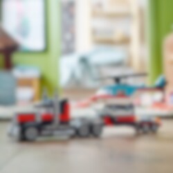Der venter hurtige eventyr for drenge og piger fra 7 år med LEGO® Creator legesættet Blokvogn med helikopter (31146). De kan bruge 3-i-1-sættets 270 elementer til at bygge et sejt legetøj med en transportvogn med bevægelige hjul, der kan bære en LEGO helikopter med bevægelige rotorblade på anhængeren. Børn kan bygge 3 forskellige legetøjssæt med 2 separate fartøjer med dette LEGO Creator 3-i-1-legetøj. De kan bygge en Blokvogn med helikopter, ombygge den til et legetøj af et propelfly og en tankvogn med bevægelige hjul, samle et hotrod- og SUV-bilsæt til racerløb eller bruge klodserne til at skabe deres egne fartøjer. LEGO Creator 3-i-1-legetøj er fremragende gaver til børn med 3 forskellige modeller, de kan skabe, i hver æske, og som devil elske at bygge, ombygge og bygge igen. 3-i-1-sæt holder dem glade i timevis og omfatter modeller, der appellerer til deres største interesser, bl.a. superhurtige fartøjer, fantastiske dyr og detaljerede byscener.