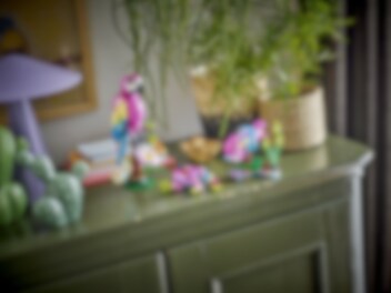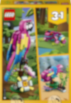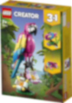Små byggere og passionerede dyrefans fra 7 år kan rejse dybt ind i regnskoven og opleve actionfyldte historier med LEGO® Creator 3-i-1-byggesættet Eksotisk pink papegøje (31144). Det omfatter en flot lyserød og blå papegøje, der kan dreje hele kroppen, mens den sidder på en gren og bevæger sine vinger og hale. 3-i-1-legetøj kickstarter det kreative sjov Børn kan bygge 3 forskellige eksotiske dyr med dette fantastiske LEGO 3-i-1-sæt. De kan skabe en farverig papegøje, der sidder på en gren, eller ombygge den til en fisk, der svømmer legende rundt i havet, eller en fræk frø, der kan bevæge benene. En sjov digital oplevelse for LEGO fans Download LEGO Builder appen, og træd ind i en ny verden af byggesjov, hvor børn kan zoome ind på og dreje modeller i 3D, gemme sæt og holde øje med, hvor langt de er kommet.