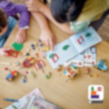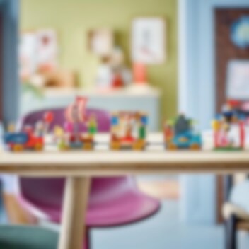 Fortryl små togfans fra 4 år med et legetøj, som alle vil tale om. LEGO® ǀ Disney sættet Disney-festtog (43212) omfatter en station, lokomotiv, 3 togvogne og 6 LEGO minifigurer: Mickey Mouse, Minnie Mouse, Vaiana, Peter Pan, Klokkeblomst og Woody. Du og dine børn kan nyde et intuitivt byggeeventyr med LEGO Builder appen, som indeholder zoom- og drejeværktøjer, så børn kan visualisere modellen, mens de bygger. Skab, brug fantasien, styrk kompetencer Dette 4+-sæt booster børns selvtillid med en sjov legeoplevelse, og startklodserne giver børn en robust base for deres model. Hver pose indeholder en figur, så børn kan starte legen hvor som helst og gøre sættet færdigt senere. Sjov for hele familien 4+-sæt er en fantastisk måde for voksne at dele sjov med børn på. Hvis den voksne heller ikke er vant til LEGO byggelegetøj, er det intet problem – børn kan tage kontrollen, fordi sættet også omfatter billedvejledning, der gør det nemt at følge processen, selv om man ikke helt kan læse endnu.