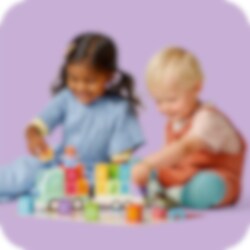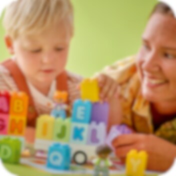 Send dit lille barn godt på vej mod at skabe ord med det sjove byggelegetøj Alfabetvogn fra LEGO® DUPLO® By. Børn kan hægte anhængeren på, læsse den med alfabetklodser og få sjov med at lære bogstaver. Sættet indeholder også et element af et stereoanlæg og en bogklods, der inspirerer de mindste til at synge alfabetet og derefter læse bogstaverne, så legetiden bliver sjov for både børn og forældre.