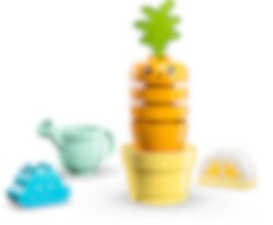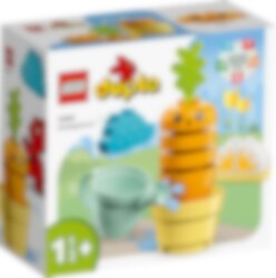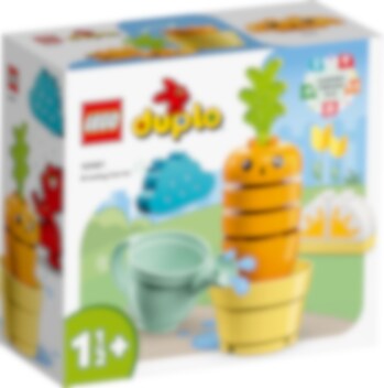 De mindste vil få masser af sjov med at lære om sund kost, og hvordan planter vokser, med det lærerige LEGO® DUPLO® Mine første-sæt Gulerod med vokseværk (10981). Det farverige sæt er designet til at give børn fra 1½ år en introduktion til konceptet selvforsyning, når de passer guleroden og stabler klodserne for at få den til at vokse. Lad barnet styre vejret vha. klodserne med sol og regnsky, så planten får, hvad den skal bruge for at gro. Hvis planten får brug for en hjælpende hånd til at vokse, kan børn give den lidt at drikke med vandkanden. Vandet må have været koldt, så overrasket som guleroden ser ud! Lærerigt legetøj, der gør det sjovt at lære Alt LEGO DUPLO legetøj er designet af eksperter og omfatter sjove fortællinger, flotte farver, engagerende figurer og masser af detaljer, der inspirerer til fantasifuld leg og styrker lærelystne børns evner til at lære.