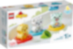 LEGO® DUPLO® Mine første-sættet Sjov i badet: Flydende dyretog (10965) er et rengøringsvenligt, udviklende badelegetøj til småbørn fra 1½ år. Flydende, rengøringsvenligt badelegetøj Gør dit barns badetid sjovere med denne søde flodhest, and og isbjørn. De 3 dyr sidder i forskelligfarvede, flydende ringe, som kan sættes sammen. Der er en spand til at vaske dyrene og en sky, der kan lave regn. Afrundede kroge gør det nemt for børn at sætte ringene sammen eller tage dem fra hinanden. De kan også forbindes med ringe fra Sjov i badet: Flydende rød panda (10964) og Sjov i badet: Flydende dyreø (10966) (sættene sælges separat). Og fordi hver ring kan åbnes og skylles, er de nemme at holde rene – bad efter bad. Legende læring for små børn Forældre kan være med til at dele dyrebare udviklingsmæssige milepæle, når LEGO DUPLO legetøj giver små børn ubegrænset sjov, selvudfoldelse og glad udforskning mellem hænderne.
