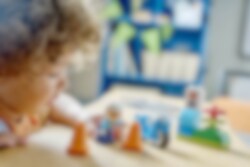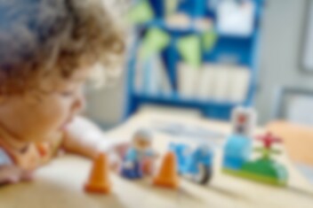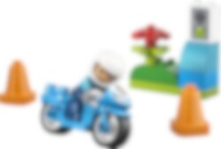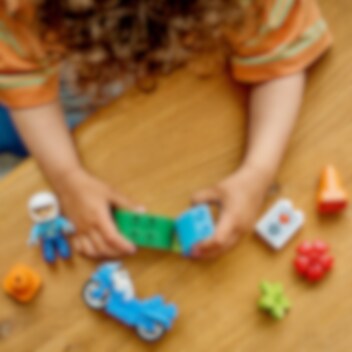 Lad de mindste lege politi og køre rundt i byen på motorcyklen! LEGO Duplo blå politimotorcykel (10471) har store, let håndterbare klodser og indeholder en politifigur, motorcykel, trafiklys og kegler at lege med. Et ideelt første byggesæt til børn fra 2 år. Denne gave til små børn indeholder en legetøjsmotorcykel, der er 5 cm høj, 9 cm lang og 4 cm bred.