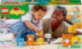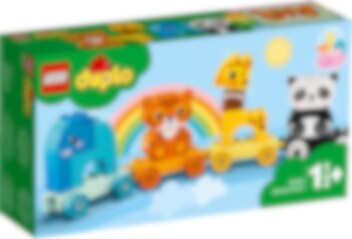 Alle børn elsker dyr, ikke? Så giv et barn den perfekte introduktion til dyreriget med LEGO® DUPLO® sættet Mit første dyretog (10955).Træklegetøj med dyreparadeDer er masser for små dyreelskere at lave med elefanten, tigeren, giraffen og pandaen. Når de bygger og ombygger, sætter vognene på række, placerer dyrene på toget, tager dem af igen og stabler dem oven på hinanden, udvikler de finmotorikken og udforsker en magisk verden af fantasifuld rolleleg. De innovative funktioner, f.eks. giraffens vippende hals, føjer ekstra glæde til dette sjove læringslegetøj. Byggekort med billeder af modellerne i faktisk størrelse lader børn holde klodserne over billedet, mens de bygger. For at få endnu mere sjov kan børn sætte toget sammen med andet hjulbaseret DUPLO legetøj.Fysisk læringslegetøj til børnLEGO DUPLO legetøj giver førskolebørn sjov, selvudfoldelse og glad læring mellem hænderne. Med DUPLO legesæt kan forældre og børn dele dyrebare udviklingsmæssige milepæle, mens de leger sammen.