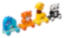 Små dyrefans vil elske at lege med elefanten, tigeren, giraffen og pandaen. Når små børn bygger og ombygger, sætter vognene på række, placerer dyrene på toget, tager dem af igen og stabler dem oven på hinanden, udvikler de deres finmotorik og opdager en magisk verden af fantasifuld rolleleg. Innovative funktioner, såsom giraffens vippende hals, føjer ekstra glæde til dette sjove læringslegetøj.