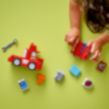 Sæt turbo på legetiden for små køretøjsfans fra 2 år med byggelegetøjet Mack til væddeløb (10417) til de mindste. Sættet er inspireret af Disney og Pixars Biler-film og indeholder en stor rød legetøjslastbil, der kan bygges. Små børn kan hjælpe lastbilen Mack med at få alle delene gjort klar, til når Lynet McQueen kommer ind til et pitstop. De kan tune hans nye motor med skruenøgle-elementet. Derefter kan de hjælpe Mack med at tjekke Lynets data på computerelementet for at sikre, at racerbilen er i perfekt stand til at slå modstanderne. Byggelegetøj fra LEGO® DUPLO® │ Disney og Pixars Biler indeholder velkendte figurer, seje scener og sjove detaljer og inspirerer familier til at fordybe sig og interagere sammen, mens de skaber sjove filmhistorier med Mack og deler dyrebare udviklingsmæssige milepæle med deres små racermekanikere.