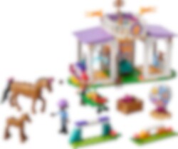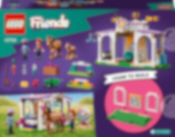 Børn fra 4 år, der elsker heste og dyrepleje, kan skabe masser af fantasifulde historier i og omkring stalden med LEGO® Friends byggesættet Hestetræning (41746). Legesættet hjælper børn med at lære at bygge og indeholder minidukkerne Aliya og Mia samt 2 hestefigurer og tilbehør til kreativ leg. Børn kan udforske forholdet mellem Aliya og hendes venindes mor, Mia, når de to knytter bånd over deres fælles kærlighed til heste. Inspiration til nye byggere LEGO 4+-sæt er designet til at give børn en hurtig og sjov byggeoplevelse. De indeholder en startklods – en robust base, der hjælper børn med sætte scenen. Lad LEGO Builder appen guide dig og dit barn på et intuitivt byggeeventyr, hvor I kan zoome ind på og dreje modeller i 3D, gemme sæt og hold styr på, hvor langt I er kommet. Velkommen til Heartlake Citys næste generation Børn kan få venner, opdage spændende steder og udspille virkelige eventyr i LEGO Friends universet.