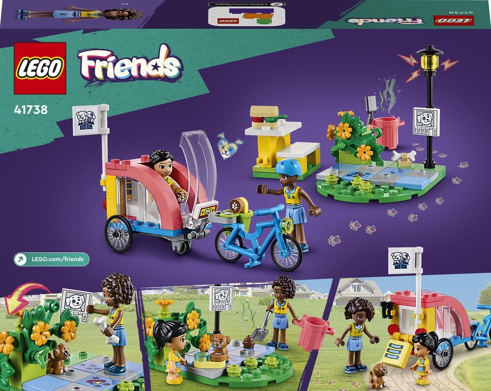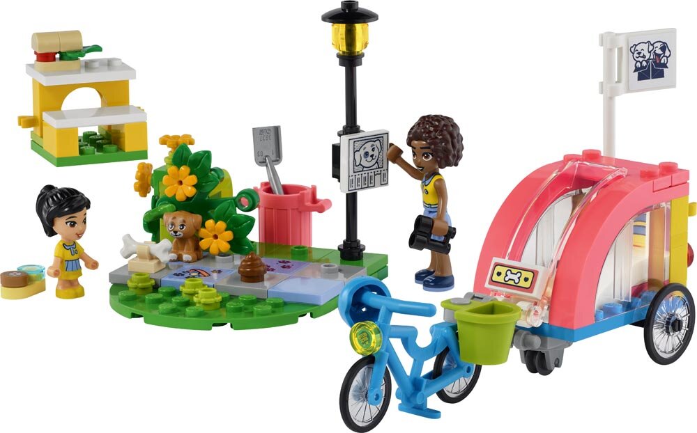 Børn fra 6 år, der elsker kæledyr, kan nyde endeløse eventyrfyldte rollelege med LEGO® Friends byggelegetøjet Hunderedningscykel (41738). De kan lede efter den forsvundne hvalp i Heartlake sammen med spejderlederen Aliya og hendes yngre veninde Victoria. Børn kan følge sporene i form af hunde-høm-høm og poteaftryk! Det cool legetøjssæt indeholder en redningscykel med aftagelig anhænger, der kan åbnes forfra og bagfra. Der er også en lille parkscene med en bænk og en busk, der kan løftes for at afsløre den forsvundne hund, samt tilbehør, der hjælper børn med at finde og passe på vovsen. En ny måde at bygge på Få et nemt og intuitivt byggeeventyr med LEGO Builder appen. Her kan børn zoome ind på og dreje modeller i 3D samt gemme sæt og holde styr på, hvor langt de er kommet. Velkommen til Heartlakes næste generation Børn kan få venner og opdage spændende steder i LEGO Friends universet, hvor de kan nyde kreativ leg og udspille virkelige eventyr.