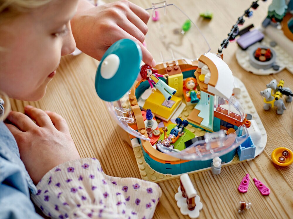 Børn fra 8 år kan skabe endeløse historier med det sjove LEGO® Friends legetøj Iglo-eventyr (41760). Først kan børn bygge igloens glamping-kuppel og iskolde omgivelser. Så kan de udspille forskellige historier, mens Paisley, hendes lillesøster Ella og veninden Aliya slapper af i bjerglandskabet. Det er den perfekte mulighed for den hårdtarbejdende Aliya og den generte Paisley til at hænge ud sammen, mens de ser Ella lege med de 2 slædehunde. Kuplen kan åbnes, så børn kan udforske dens hyggelige indre. Der er også et opholdsområde, lyskæde, bålplads og dampbad, der kan udforskes og inspirere til flere historier og rollelege i sneen. Boost den sjove oplevelse Børn kan udforske et nemt og intuitivt byggeeventyr med LEGO Builder appen, hvor de kan zoome ind på og dreje modeller i 3D, gemme sæt og holde styr på, hvor langt de er kommet. Velkommen til Heartlake Citys næste generation Børn kan få venner, opdage spændende steder og udspille virkelige eventyr i LEGO Friends universet.