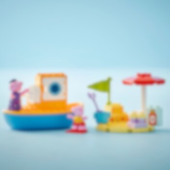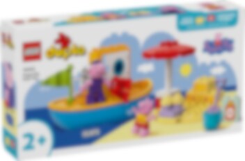 Alle ombord i LEGO® DUPLO® legetøjet Gurli Gris' bådtur (10432), der rummer timevis af glad læring for de mindste. Piger og drenge fra 2 år kan tage med figurerne af Gurli og Bedstefar Gris til stranden i hans båd. Bygge- og ombygningslegetøjet erfyldt med kreativt tilbehør, der inspirerer små børns historiefortælling. De kan hjælpe Gurli med at smøre solcreme på, gå på jagt efter skaller og finpudse deres stablingsevner ved at bygge et sandslot. Hvis solen er for varm, kan Gurli søge ly under parasollen eller tage en svømmetur, og tumlinger træner deres øje-hånd-koordination og finmotorik, når de hjælper hende med at tage sine svømmefødder på. Hvis de små også gerne selv vil køle af, kan Gurli Gris-legesættet med en båd flyde rigtigt, så de kan nyde timevis af plaskende sjov med vandlegetøjet. LEGO DUPLO Gurli Gris børnelegetøj er designet til at understøtte børnehavebørns læring og hjælpe dem med at tænke logisk og kreativt, når de bygger en historie og udspiller scener fra tv-serien.