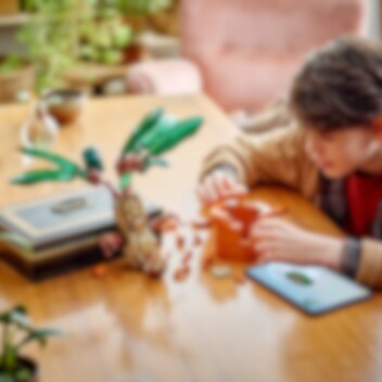Skab den første model nogensinde i LEGO® klodser af en mandrake fra botaniklektionen på Hogwarts. Byg den magiske plante, sæt bladene i forskellige stillinger, og udstil den i krukken. Tag mandraken op af krukken for at afsløre det ikoniske væsens rødder. Bevæg dens bryst for at få mund og lemmer til at se ud, som om den skriger, ligesom mandrakerne gør i Harry Potter-historierne!