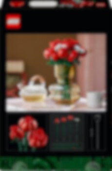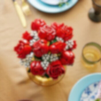 Forkæl dig selv, eller giv sættet LEGO® Icons Buket roser som gave til en, du holder af. Den strålende buket, der kan bygges, er perfekt til valentinsdag eller andre særlige anledninger og indeholder et dusin røde roser og 4 kviste brudeslør. Nyd den afstressende byggeoplevelse, når du laver hver enkelt blomst og derefter sætter dem i din yndlingsvase som en tidløs udstilling derhjemme eller på kontoret.