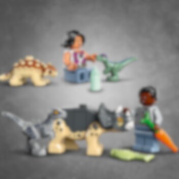 Unge fans fra 4 år kan passe og lege med dinosaurunger, mens de lærer at bygge, med LEGO® Jurassic World sættet Dinosaurunge-internat (76963). Det omfatter en offroader og et forskningsområde med en hulevæg, begge med startklodselementer, samt en foderstation. Børn får 2 minifigurer, babyfigurer af ankylosaurus, triceratops og velociraptor samt små dinosaur-legetøjsfigurer af en lille velociraptor og voksen pteranodon til hurtigt at sætte gang i legen. Der medfølger billedvejledning til dette LEGO dinosaurlegetøj til børn, der lige er begyndt at læse. LEGO Builder appen indeholder ekstra digitalt sjov med intuitive zoom- og drejeværktøjer, så drenge og piger kan se deres model, mens de bygger. LEGO Jurassic World 4+-sæt introducerer små børn til populære figurer fra film og tv og er sjove gaver med dinosaurer. De indeholder specialdesignede startklodser, så selv førstegangsbyggere kan bygge fartøjer, bygninger og meget mere med en lille smule hjælp fra en ældre søskende eller voksen.