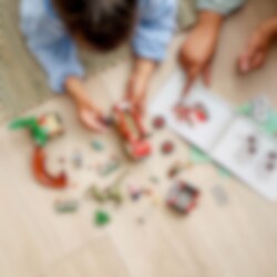 Hæng ud i Camp Cretaceous med Ben, Brooklynn og Claire Dearing. Kør offroaderen over til det seje trætophus, der har en seng, håndvask, toilet, stige og endda en rutsjebane til ankylosaurus-ungen Bumpy! Men pas på – en stygimoloch er undsluppet og skaber kaos på Isla Nublar. Brug guleroden til at få dinosauren sikkert ind i buret. Fjern derefter alle dinosaur-pøllerne med skovlen!