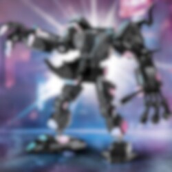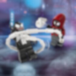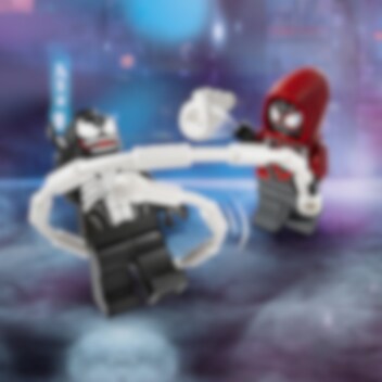 Åbn kamprobottens bryst, sæt Venom ind, og omdan symbioten fra rummet til en mega kampmaskine! Når Miles Morales svinger sig i aktion med sine håndholdte netskydere og sit "netreb", drejer mech'ens bevægelige ben og arme sig for at gribe Miles medkløerne. Men Miles slynger sit "netreb" rundt om mech-robotten og svinger sig fri. Med sættet Venom-kamprobot mod Miles Morales slutter den vilde Marvel-kampaction aldrig!