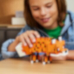 Byg en imponerende ræv fra Minecraft til fremvisning! Ræven (21588) er en stor, detaljerig figur med bevægelige ben, drejelig hals og et hoved, der kan vise ræven med åbne eller lukkede øjne. Indstil den stående og vågen, siddende med bøjet hoved eller liggende og sovende. 497 klodser til Minecraft-fans og byggere fra 10 år.