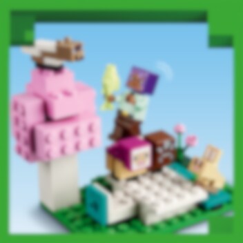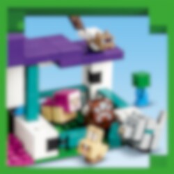 Tag dig godt af dyreungerne i LEGO® Minecraft® Dyrereservatet. Med 3 sjove områder at udforske – et indhegnet legeområde med et rum til madopbevaring, et udendørs picnicområde og et hyggeligt tæppe, hvor trætte dyr kan hvile – vil dine gæster få lyst at blive for altid! Og med så mange mobs kan du også bruge dem til at udvide andre LEGO Minecraft sæt (sælges separat), f.eks. Skildpaddestrandhuset (21254).