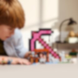 Hakke-minen (21277) er fyldt med eksplosiv LEGO® Minecraft® action og er et interaktivt byggelegetøj af høj kvalitet til drenge og piger fra 8 år. LEGO Minecraft legetøjet med hakken er sprængfyldt med kreativt byggeri og medrivende leg og er den perfekte gaming-inspirerede gave til Minecraft-fans og børn med en passion for eventyr og fantasifuldt sjov. Sæt med 3 minifigurer: den populære karakter Alex, en minearbejder og en omstrejfende edderkoppejockey. Der er også en isbjørneunge uden for minen. Børn kan udvinde Minecraft-malm fra minen, læsse den i en minevogn og transportere den på skinnerne til opbevaring i en kiste. Vognen kan fyldes med TNT og sprænge sig gennem klippevæggen til den anden side. Og når dagens mineeventyr er slut, fungerer LEGO Minecraft hakke-legetøjet som en iøjnefaldende udstillingsgenstand. For at få ekstra digitalt sjovt kan byggere zoome ind på og dreje modeller i 3D samt følge deres fremskridt i den intuitive LEGO Builder app. Indeholder 530 elementer.