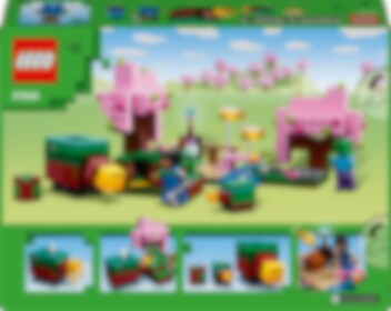 Kirsebærtræhaven (21260) er et fysisk legetøj med videospiltema og det første LEGO® sæt, der indeholder figurer og funktioner fra kirsebærtræ-biomet i Minecraft®-spillet. Det vil være en fantastisk gave til Minecraft-videospillere og børn fra 8 år, der nyder naturen og legesæt med dyr – og at kæmpe mod zombier! Dette er det første LEGO Minecraft legesæt med heltefiguren Sunny. Børn kan hjælpe Sunny med at passe kirsebærtræhaven, der indeholder 2 farvestrålende træer, en lille bro over et vandløb og en sandhave med en dekorativ krukke og en sortstensklippe. Der er 2 bier, en voksen sniffer – en venlig mob fra spillet – samt en snifferunge og et snifferæg. Børn kan bruge den voksne sniffers fingerbetjente sniffefunktion til at grave et sjældent frø op af jorden med snuden. Som ekstra kampaction er der en fjendtlig zombie at kæmpe mod i haven. Der er også masser af digitalt sjov at få, når byggere bruger den intuitive LEGO Builder app.