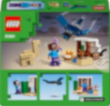 Dette LEGO® Minecraft® legetøj til spillere fra 6 år er det første byggelegetøj i Minecrafts ørkenbiom. Steves ørkenekspedition (21251) udfordrer børn til at bygge et Minecraft-hus i fjendtlige omgivelser og derefter forsvare det mod angreb fra det flyvende fantom. Denne gave til drenge og piger fra 6 år kan ombygges og rummer 3 LEGO Minecraft figurer, bl.a. Steve, samt en Minecraft-hytte i ørkenbiomet. Sættet omfatter ikoniske Minecraft-elementer, f.eks. et craftingbord, lejrbål og diverse elementer til et ørkenlandskab. Det vil være en fremragende gave til enhver Minecraft-fan og inspirerer til kreative eventyr og kampfyldt action, når et flyvende fantom med bevægelige vinger suser ned for at angribe basen. Legetøjet indeholder også et opdateret ansigtsudtryk for Steve og den første kamelunge nogensinde i et LEGO Minecraft sæt. Denne gaveidé til børn og gamere er kompatibel med andre LEGO Minecraft legesæt (sælges separat).