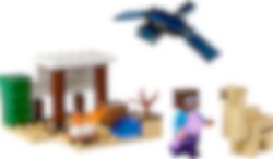 Steve er på en ørkenekspedition! Hjælp ham med at opbygge en cool base i det varme biom. Med et craftingbord, ild og en seng er den fjerntliggende hytte perfekt til uforstyrret minecrafting. Men ikke længe! Om aftenen suser et fantom ned fra himlen. Steve griber sin fortryllede økse for at bekæmpe den flyvende skurk. Overtager fantomet dit gemmested? Eller kan Steve få den onde mob til styrte ned i en kaktus?!