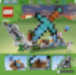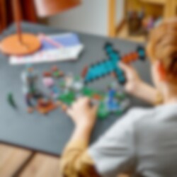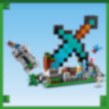 Giv en Minecraft®-spiller fra 8 år et ikonisk diamantsværd – i kæmpe skala! LEGO® Minecraft sættet Sværd-forposten (21244) bruger det dyrebare våben som design til en supercool base, hvor børn kan bygge en afslapningszone og udkæmpe eksplosive kampe. Lege- og udstillingsmodel af et diamantsværd Børn kan bygge en kæmpestor diamantsværd-base i en bjergside og forsvare den mod angreb fra fjendtlige mobs. Basen indeholder et bord, en småkage og en jukeboks, hvor de kan "afspille" en plade. Udenfor står en skildvagt og en vogterkriger vagt. Der er ekstra ildkraft i 2 skydere, som er placeret foran på basen. De fjendtlige mobs er en Creeper og et skelet. Venligtsindede mobs er en gris og en allay med folievinger. Et håndtag nederst på tårnet udløser en eksplosion, der får en del af konstruktionen til at falde sammen. Som ekstra digitalt sjov indeholder LEGO Builder appen intuitive zoom- og drejeværktøjer, så børn kan visualisere deres model, mens de bygger.