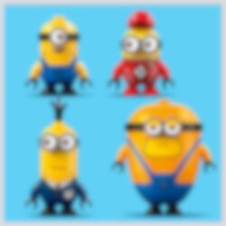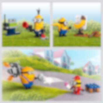 Gå helt bananas med denne vilde flok Minions! Megaminion Dave holder en vægtstang i den ene hånd og en bilmotor i den anden. Den kreative Mel maler et portræt – af en banan! Pitcrew-minion Ron kører den store bananbil, mens den hemmelige AVL-agentminion Tim flyver forbi med drejelige rotorblade på hovedet og en fjernbetjening i hænderne. Hvilke sjove ting finder de nu på? Det bestemmer du.