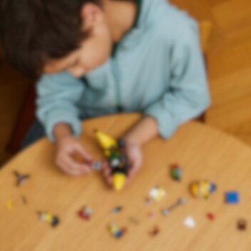 Glæd en Minions-fan med LEGO® Grusomme mig 4 sættet Minions og bananbil (75580). Det kreative legetøj til børn indeholder 4 minions, et lille billegetøj samt tilbehør. Det er en sjov legetøjsgave med filmtema til drenge og piger fra 6 år og fans af Illuminations Grusomme mig 4. Er du på udkig efter et LEGO Minions sæt, en lille legetøjsbil eller en sjov gave? Tjek Minions-bananbilen med førersæde og aftagelig motor. Køretøjet omfatter 4 minions og tilbehør. Megaminion Dave kan løfte motoren med den ene hånd og en vægtløftningsstang i den anden. Mel maler et billede af en banan, mens den hemmelige AVL-agentminion Tim flyver forbi med drejelige rotorblade på hovedet og en fjernbetjening i hånden. På jorden står hans arbejdsstation, fyldt med specialværktøjer, bl.a. røntgenbriller. Pitcrew-minion Ron har blevagten ved puslebordet. Han har alt udstyret, herunder en beskidt-ble-bortskaffelsespistol. Byggere kan også få digitalt sjov, når de zoomer ind på og drejer sæt i LEGO Builder appen.