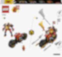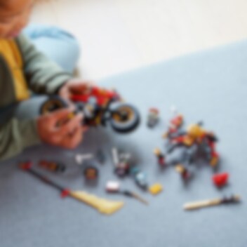 Små byggere fra 7 år og fans af seje køretøjer kan udspille deres egne fantasifulde opgør mellem det gode og det onde med det actionfyldte legesæt Kais robotkværn EVO (71783). Det indeholder en bevægelig mech-robot og en cool motorcykel, som kan opgraderes til en større model ved at tilføje gyldne sidepaneler og en stor gylden klinge. Opgør mellem det gode og det onde Dette byggesæt indeholder 4 minifigurer: Kai og Nya, begge bevæbnet med sværd, Knoglekongen med sit eget sværd og Knoglejæger med en knoglehakke og et sværd. Når børn gennemfører deres udfordring, bliver de belønnet med et Fokus-banner til samlingen, som kan sættes fast på ninja-motorcyklen. En sjov digital oplevelse for LEGO byggere Lad LEGO Builder appen guide dig og dit barn på et nemt og intuitivt byggeeventyr. Zoom ind på og drej modeller i 3D, gem sæt og hold styr på, hvor langt I er kommet.