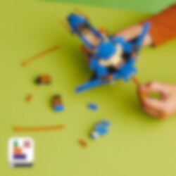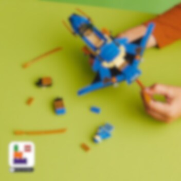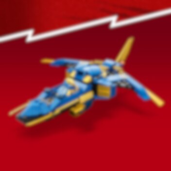 Flyv højt til vejrs med Jay i hans superseje lynjet for at beskytte NINJAGO® City! Hold udkig efter skurke, mens du patruljerer luftrummet over ninjaernes hjem. Når du lander, kan du opgradere jetflyet for at gøre det større og mere skræmmende ved at tilføje gyldne klinger, et ror og 2 kraftfulde knopskydere, før du drøner op blandt skyerne igen. Nu kan du affyre skyderne ved det første tegn på fare!