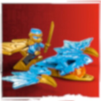 Flyv mod skyerne og udkæmp modige kampe, når vågnende drage-Nya og hendes blå drage kæmper mod en ulvemaske-klokriger! Sæt Nya på dragens ryg, bank dens gyldne hale ned og se, hvordan Nya får energi af dragekraften og drøner direkte i kamp! Kan hun vælte ulvekrigeren og undgå hans skarpe kløer for at redde den nye NINJAGO®-verden?