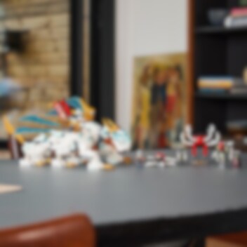 LEGO® NINJAGO® legesættet Zanes isdrage-væsen (71786) er fyldt med alt, hvad børn fra 10 år behøver for at udspille rolleleg med deres ninjahelte. Denne NINJAGO 2-i-1-model kan bygges om til en bevægelig isdrage med 6 ben, en lang hale, horn og vinger med gyldne klinger og derefter ombygges til en bevægelig dragekriger, der står på 2 ben og holder en stor gylden klinge. Legesættet indeholder 5 minifigurer Byggesættet indeholder 5 minifigurer: Zane og Pixal, hver med et sværd, som kan udspille kampe mod skurkene Knogleridder, Knoglekriger og Knoglekongen, som hver har et våben fra de grønne knoglekrigeres våbenpakke. Denne skurke-trio har også et klodsbygget tempel, hvor de kan samles. LEGO Builder appen Lad LEGO Builder appen guide dig og dit barn på et nemt og intuitivt byggeeventyr. Zoom ind på og drej modeller i 3D, gem sæt og hold styr på, hvor langt I er kommet.