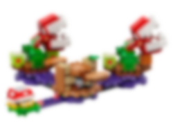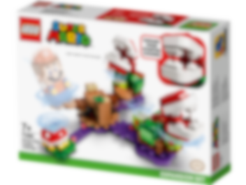 Føj en bane med kødædende planter til din LEGO® Super Mario™ startbane med dette superseje udvidelsessæt! Der er giftsumpe overalt i sodajunglen, så pas på, du ikke falder i. Hop på en spiny for at optjene mønter, og drej derefter på karrusellen for at banke de kødædende planter af vejen, og afslør 3 rødmøntblokke. Hop på dem alle inden for tidsfristen for at vinde en kæmpe belønning!