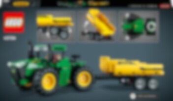 Gør dig klar til at løse ethvert job på gården med LEGO® Technic John Deere 9620R 4WD-traktor. Modellen er inspireret af den ægte vare med store hjul og knækstyring og har også en trailer, der kan tippes – perfekt til at flytte tunge læs. Med sine terrængående hjul kan traileren klare ethvert underlag. Den har også en trækstang med et ekstra hængsel, så den kan klare kuperede udfordringer.