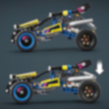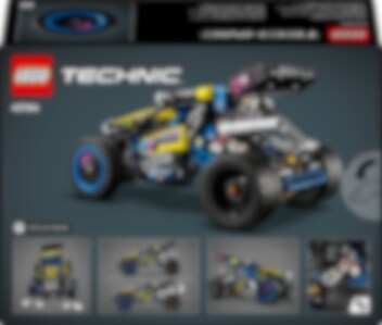 Mød den seje buggy, der kører den sjove oplevelse helt op! Byg den flotte LEGO® Technic Offroad-racerbuggy, og sæt den på en prøve. Send den drønende afsted i spændende buggy-stil. Tjek affjedringen og den 4-cylindrede motor. Prøv derefter den seje vippestyring, hvor bilen kan læne sig fra side til side. Fantastisk!