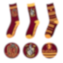 3 par strømper i farverne rød og gul med flot Gryffindor motiv fra Harry Potter. En flot gave til enhver Harry Potter fan. Strømperne er lavet i 98% polyester og 2% elastan og passer størrelserne 35-45. Dette er et officielt licensprodukt fra producenten Cinereplicas.