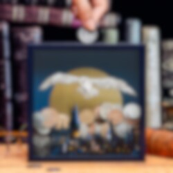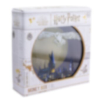 Hård sparegris i mørkeblå farve med 3D-motiv af Hedwig, der flyver over Hogwarts slot fra Harry Potter. God at opbevare dine mønter i, mens den samtidig pynter. Spargrisen er 18 x 18 cm i størrelse og er et officielt licenseret Harry Potter-produkt.