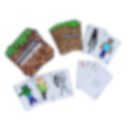 Sjovt kortspil med motiver fra det populære spil Minecraft. Et sjovt spil, som alle Minecraft-fans vil elske. Dækket indeholder 52 spillekort og kommer i en pæn æske.