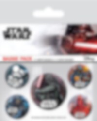 5 badges med seje Star Wars-motiver. Gode til at gøre din rygsæk lidt sejere med. Der er 4 badges, der er ca. 2,5 cm i diameter og den sidste badge er ca. 3,8 cm i diameter. Dette er et officielt licenseret Star Wars-produkt.