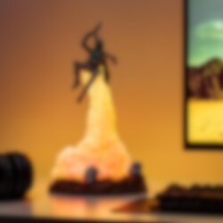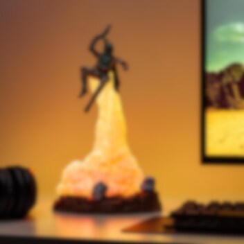 Træd ind i Star Wars-universet med denne imponerende diorama-lampe, der forestiller den ikoniske dusørjæger Boba Fett. Lampen er 32 cm høj og tilbyder tre forskellige lysindstillinger, hvilket gør den til en alsidig og stemningsfuld belysningsløsning.