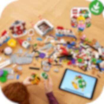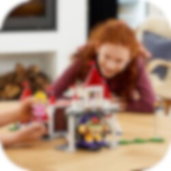 Lad børn tilføje et ikonisk sted til deres LEGO® Super Mario univers med udvidelsessættet Peach's Castle (71408). Der er så meget, spillere kan udforske, og masser af måder at optjene digitale mønter på med deres interaktive LEGO® Mario, LEGO® Luigi eller LEGO® Peach figurer (medfølger ikke). Sættet omfatter en tronsal med drejelig væg, der afslører Bowser, et mosaikvindue med Peach-motiv, et Bob-omb-maleri med et actionelement, en kage med en goomba skjult indeni, et specialrør: Peach's Castle, en tidsblok, en "ødelagt" bro, en frugtskål med en lilla frugt og meget mere. (Bemærk: Startbanesæt 71360, 71387 eller 71403 er påkrævet for interaktivt spil). Del den sjove oplevelse Dette legesæt er en perfekt gave til børn fra 8 år. Det indeholder 5 Super Mario-figurer og er ideelt til spil på egen hånd eller sammen med andre. Download LEGO Super Mario appen for at få byggevejledninger. Ubegrænsede baner Med LEGO Super Mario startbaner og udvidelsessæt kan fans udvide, ombygge og skabe deres egne baner til timevis af spil og leg med møntindsamling.