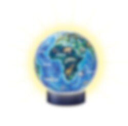 3D-puslespil af en jordklode med belysning, der kan bruges som natlys. Puslespillet har 72 brikker og en højde på ca 16 cm. Ingen lim er nødvendig til dette puslespil, det er bare at bygge.