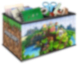 3D-puslespil i form af en flot opbevaringsboks med Minecraft-motiver, der kan fyldes op med forskellige ting. 3D-puslespillet er cirka 22,6 x 15,5 x 13,5 cm stort. Ingen lim er nødvendig til puslespilet, det skal bare bygges.